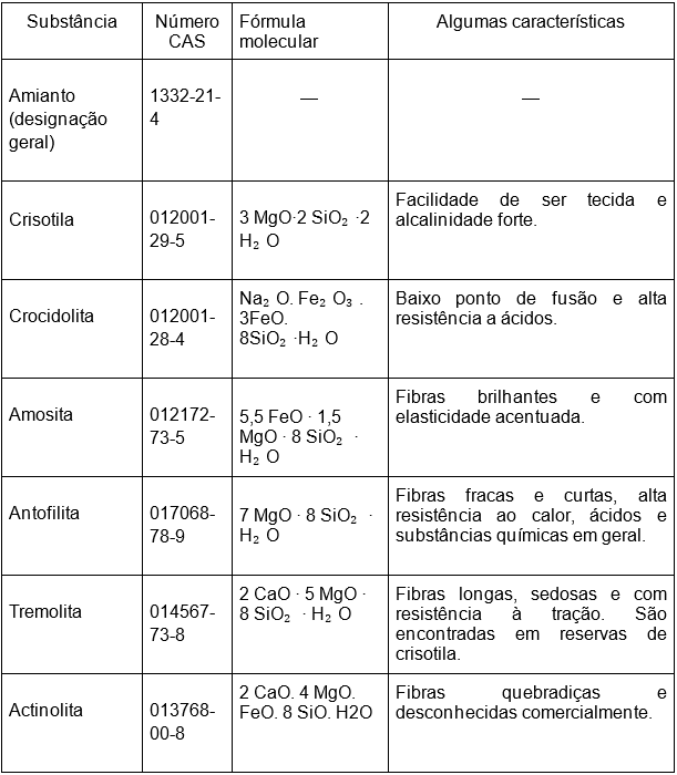Independentemente de suas perceptíveis diferenças estruturais, é necessário ponderar que os minerais de amianto têm em comum uma série de propriedades físico-químicas que fizeram com que fossem úteis e muito utilizados na indústria por muitos anos, como a alta resistência à tração e impactos mecânicos, durabilidade, flexibilidade e primorosa capacidade de isolamento térmico e acústico, além de pequena condutividade elétrica e alta disposição para se agregarem como matrizes estabilizadas juntamente com outros compostos, como cimentos e resinas (Abrea, 2016 apud Pires, 2017).