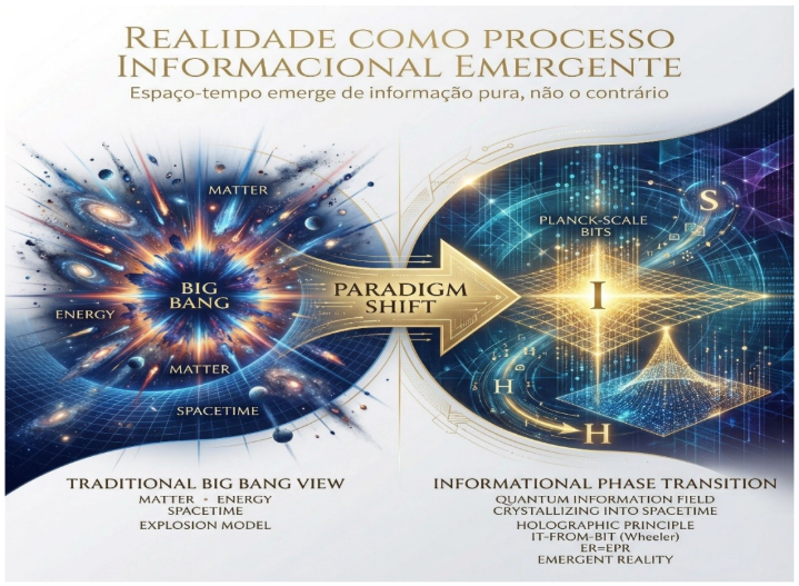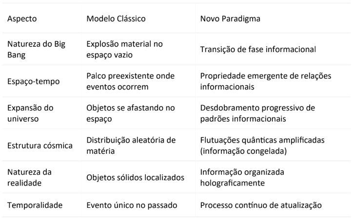 Essa perspectiva também reforça a reinterpretação do Big Bang como uma transição de fase informacional.