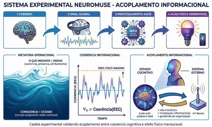 Registros públicos e reprodutíveis indicam que, quando essa coerência atinge um limiar crítico, efeitos físicos observáveis emergem em sistemas externos, como a ativação de dispositivos IoT.