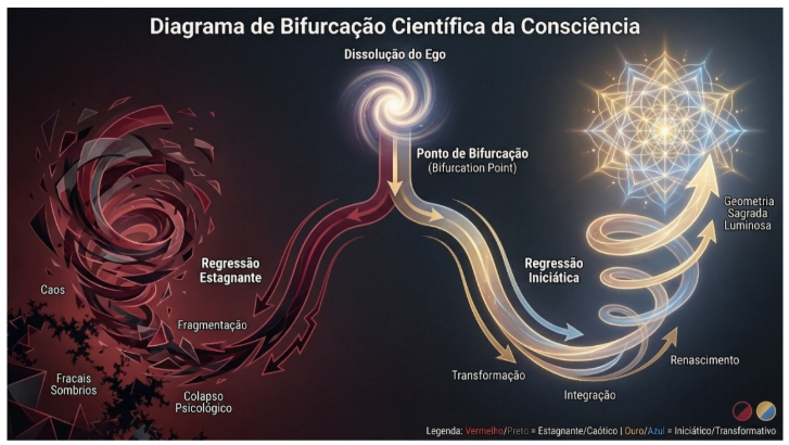 Nesse cenário, torna-se fundamental distinguir dois tipos de regressão: (a) a regressão iniciática, que conduz à reintegração transformadora, e (b) a regressão estagnante e artificialmente induzida, na qual a dissolução do ego não promove maturação, mas vulnerabilidade e controle.