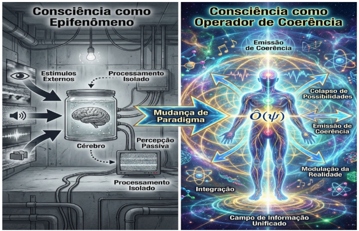 A consciência, por sua vez, aparece como um processo altamente especializado de manipulação e integração dessa informação física, atuando como um operador interno capaz de modular estados possíveis da realidade.