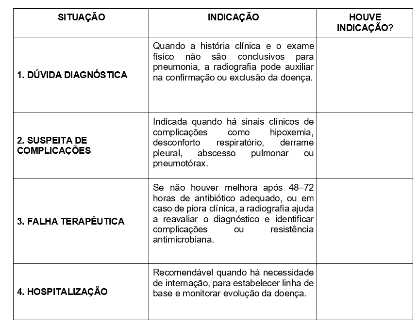 Indicações para realização de radiografia de tórax em pediatria na pneumonia