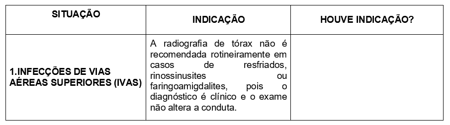 a) Buscar na literatura as indicações adequadas para a solicitação de radiografia de tórax em infecções de vias aéreas;