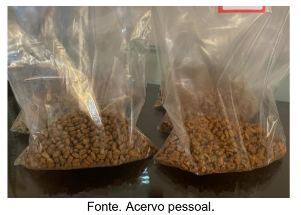 Na primeira fase do trabalho, a pesquisa consistiu em fazer um levantamento de todas as marcas de rações para gatos e seus valores, encontradas no comércio. Durante o levantamento, as rações foram agrupadas por fases da criação animal, como Filhotes e Adultos; e por categorias, como Standard, Premium, Super Premium e Rações especiais. Após o levantamento, as rações foram levadas para o laboratório de alimentos da UNIG e identificadas por letras para se preservar o nome do fabricante (Figura 2), onde as informações dos rótulos foram analisadas.