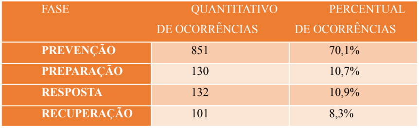 A análise dos dados evidencia um amadurecimento institucional no enfrentamento dos desastres, com transição progressiva da lógica reativa para a lógica preventiva. A atuação majoritária nas fases de prevenção e preparação confirma o alinhamento com o SINPDEC, que privilegia ações estruturantes e de longo prazo em detrimento das medidas paliativas. Esse avanço não elimina a importância das fases de resposta e recuperação, que continuam sendo essenciais em situações de emergência, mas redefine seu papel dentro de uma abordagem mais ampla e integrada de gestão de riscos.