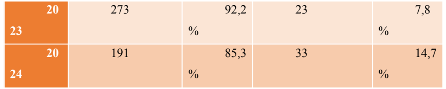 Em 2023, observou-se uma redução no número total de ocorrências para 296. No entanto, a proporção de ocorrências preventivas aumentou ainda mais: 273 (92,2%) foram classificadas no Grupo 1, contra apenas 23 (7,8%) no Grupo 2.