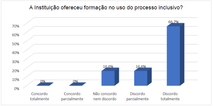 É bem verdade, que muitas instituições de ensino, como no caso a escola onde foi realizada esta pesquisa, não possuem infraestrutura e nem pessoal com conhecimento e logística adequada para receber alunos com necessidades especiais, mas nem por isso o educador deve se acomodar e não se preocupar com o futuro desses discentes, e seu convívio com os demais. No decorrer da investigação foi analisado também se a instituição de ensino oferece alguma formação complementar para os docentes que atuam na unidade escolar.
