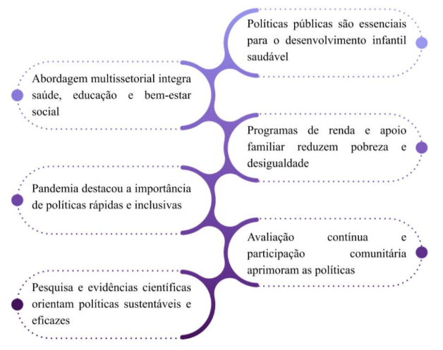 A abordagem multissetorial é crucial no desenvolvimento e implementação de  políticas públicas que apoiem o crescimento infantil (Nemati et al., 2025). Uma das lições  essenciais trazidas por este estudo é a importância de políticas inclusivas que unam saúde,  educação e assistência social. Exemplos de sucesso incluem transferências condicionadas de  renda e programas de visita domiciliar, que têm mostrado eficácia em mitigar impactos  negativos associados a ambientes adversos e promover o bem-estar infantil (Dias et al., 2024).