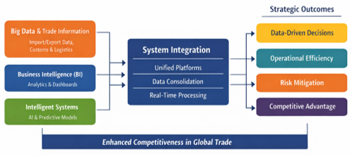 The growing availability of trade-related data from customs systems, logistics platforms, financial institutions, and regulatory bodies has created a fertile environment for analytical decision support. However, the strategic value of data depends not on its volume but on its integration, reliability, and analytical treatment. Business intelligence systems play a critical role in this process by consolidating dispersed data sources, enabling real-time monitoring of key performance indicators, and facilitating predictive and diagnostic analyses. According to Davenport and Harris (2007), organizations that adopt analytical approaches to decision making tend to outperform those that rely primarily on intuition, particularly in complex and uncertain environments such as international trade.