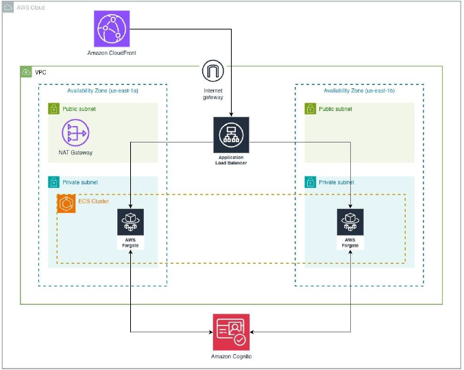 Conforme apresentado na figura 2, a aplicação foi implantada na Amazon Web Services (AWS), utilizando contêineres gerenciados pelo Amazon ECS com AWS Fargate, balanceamento de carga e distribuição via CloudFront. O streaming de vídeo da webcam foi viabilizado por meio do protocolo WebRTC, utilizando a biblioteca streamlit-webrtc, com suporte dos serviços STUN/TURN da Twilio.