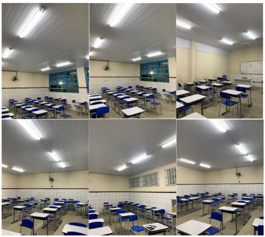 Para verificação dos resultados, foi preciso realizar um estudo de caso por meio do cadastro in loco. O estudo foi realizado em 6 salas de uma escola pública em Vitória da Conquista durante o período noturno, com auxílio do luxímetro (Akso), com coleta de dados em 8 pontos por sala para coleta geral. Os dados foram em seguida tabelados, as salas foram cadastradas, com uso do aplicativo autocad e utilizados para o modelo ideal para cada uma das salas. A coleta aconteceu no dia 31/10/2025 às 19 horas, com registro fotográfico dos espaços. Após a coleta, os dados foram confrontados com padrão observado na ABNT.