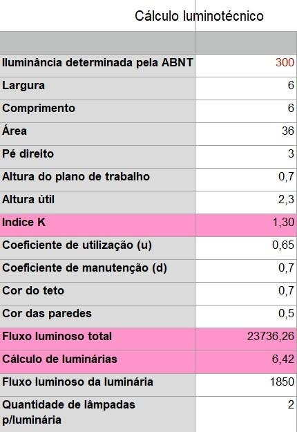 Apontando o cálculo que é realizado, inicialmente é previsto a iluminância média (Em) em que sua fórmula consiste: