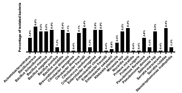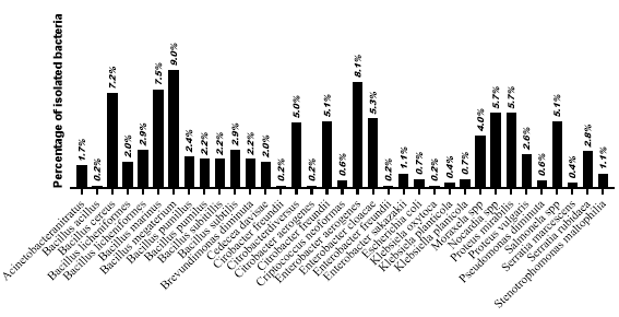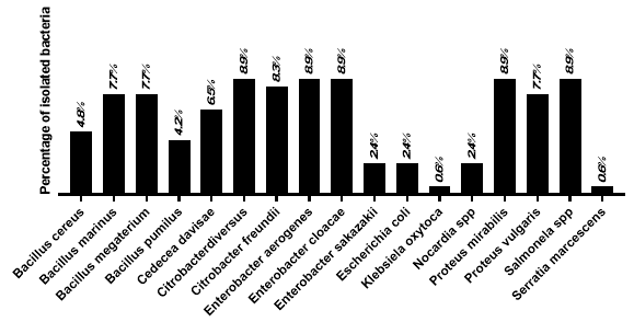 Figure 4: Prevalence of bacterial isolates in P. perna mussel intestinal tissue.