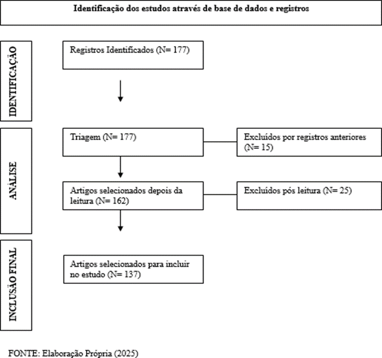 A análise de dados foi realizada por meio da técnica de análise de conteúdo, a qual permitiu identificar, categorizar e interpretar os principais temas relacionados ao objeto de estudo. Essa abordagem possibilitou uma avaliação minuciosa dos documentos selecionados, visando responder às hipóteses e aos objetivos propostos. Foram analisados aproximadamente 177 artigos científicos publicados nos últimos dez anos, o que possibilitou reconhecer padrões, recorrências e significados presentes nos materiais, contribuindo para uma compreensão aprofundada do tema investigado.