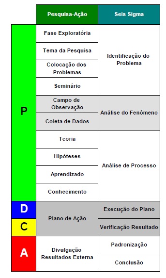 Figura 2. Comparação entre as fases do PDCA e Seis Sigma