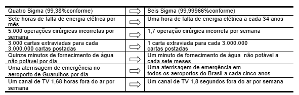 Tabela 2. Tabela do impacto da obtenção de um nível de qualidade Seis Sigma em comparação com um nível de qualidade Quatro Sigma