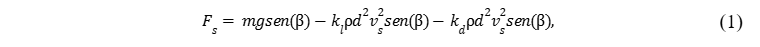 A integração de todas as influências resulta em expressões para as forças resultantes paralela e ortogonal à superfície do painel. A força de deslizamento, responsável pela remoção, é definida pela Equação (1):
