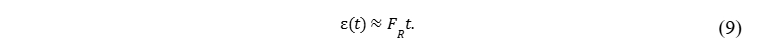 Como o intervalo entre limpezas usualmente está na escala de dias, a irradiância é substituída pela irradiância média diária I. Adicionalmente, considerando que o intervalo entre limpeza seja pequeno o suficiente para manter a fração de cobertura pequena (ε≈0), a equação (3) é dominada pela força de retenção, conforme ilustrado na Figura 2: