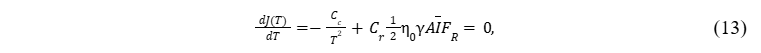 Para encontrar o período T que minimiza o custo de operação, deriva-se J igualando a zero: