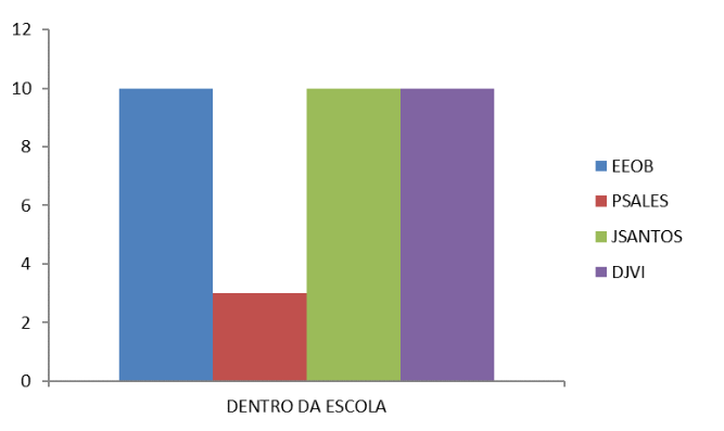 De acordo com a Figura 03, a maioria das escolas prefere que as rondas policiais aconteçam nas dependências das escolas, como forma de suprimir e/ou minimizar os casos de violência acometidos por alunos contra outros alunos e/ou professores e, estes resultados estão em concordância com os trabalhos de Camacho (2000) que afirma que os atos de violência ocorrem prioritariamente nos pátios, corredores e nas calçadas das escolas.