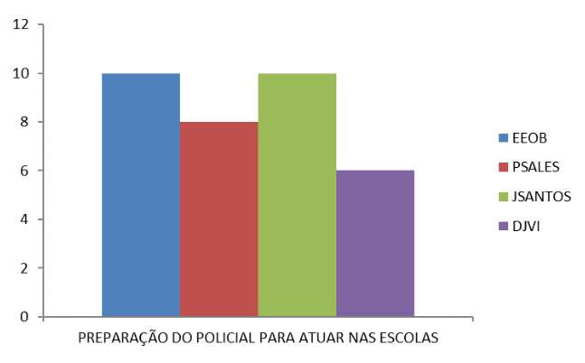Mesmo que seja perceptível que a presença do policial militar seja imprescindível, as escolas não convidam tais profissionais para as reuniões sobre o projeto político pedagógico, uma vez que este profissional pode colaborar positivamente e enriquecer profissionais da educação com sua vivência nas ruas no combate a violência e na restauração da ordem. Este resultado corrobora os estudos feitos por Luck (2009) que afirma em pesquisa, que os policiais militares nunca foram convocados para participar do plano político pedagógico, com o intuito de traçar metas para a atuação do policial, de forma a estabelecer segurança aos frequentadores do ambiente sem que haja intimidação de ninguém frequente tal ambiente.