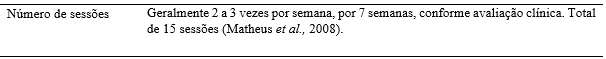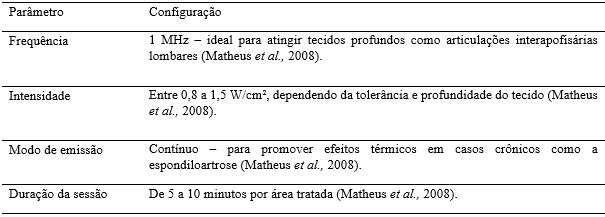 Tabela 3 – Parâmetros da aplicação do ultrassom terapêutico