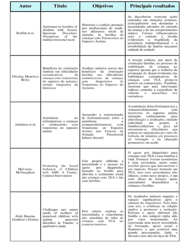 Após a revisão dos diversos artigos, foi possível se notar uma análise intrínseca em relação aos desafios enfrentados pelas famílias, em cada nível de atenção, como a dificuldade em lidar com o diagnóstico, o estigma, a falta de tempo, a mudança de rotina, a falta de comunicação, o desejo de ser ouvido e acolhido².