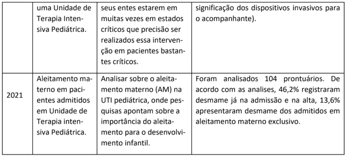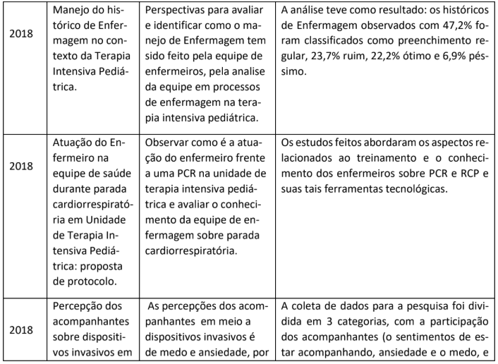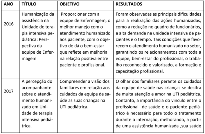 Diante da leitura dos artigos, foi formada uma temática para ser discutida a respeito da enfermagem na UTI pediátrica, que é (Segurança e a humanização da enfermagem na unidade de terapia intensiva pediátrica).