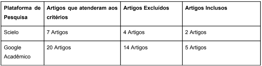 Foram encontrados 27 artigos científicos; 18 foram excluídos por não abordar diretamente a temática proposta, apenas 7 atenderam aos critérios, estes: publicados em periódicos com revisão por pares, completos em português. Foram excluídas publicações que não foram revisadas por pares, escritas em outro idioma, com foco biomédico, editoriais, resenhas, trabalhos acadêmicos, dissertações e teses.