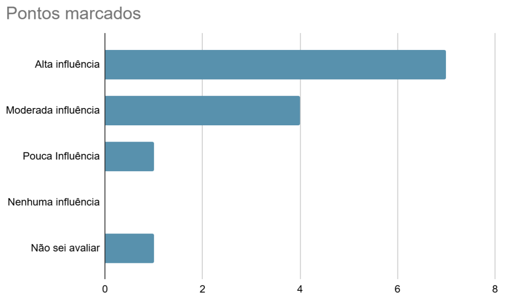 O gráfico 7 mostra que a maioria dos profissionais (76,9%) apontou que os distúrbios vestibulares têm uma influência muito significativa na coordenação motora de crianças com TEA. Outros 23,1% classificaram essa influência como moderada, enquanto nenhuma resposta indicou as opções “pouca”, “nenhuma” ou “não sei avaliar”. Esses achados reforçam a percepção de que o sistema vestibular exerce papel central nas dificuldades motoras dessa população, sendo um ponto de atenção importante para avaliação e intervenção clínica.