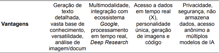 [1] SANCHES, Henderson Matsuura. Comparison between Chat Gemini and ChatGPT: a critical analysis of advantages and disadvantages. [S. l.: s. n.], 2024. Disponível em: https://atenaeditora.com.br/catalogo/artigo-revista/comparacaoentre-chat-gemini-e-chatgpt-uma-analise-critica-de-vantagens-e-desvantagens. Acesso em: 15 ago. 2025.