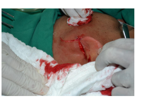 Figura 4. Incisão retroauricular com extensão de acesso de Blair.
