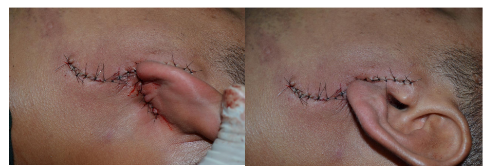 Figura 11. Demonstração pós operatória de preservação bem sucedida de nervos faciais motores.