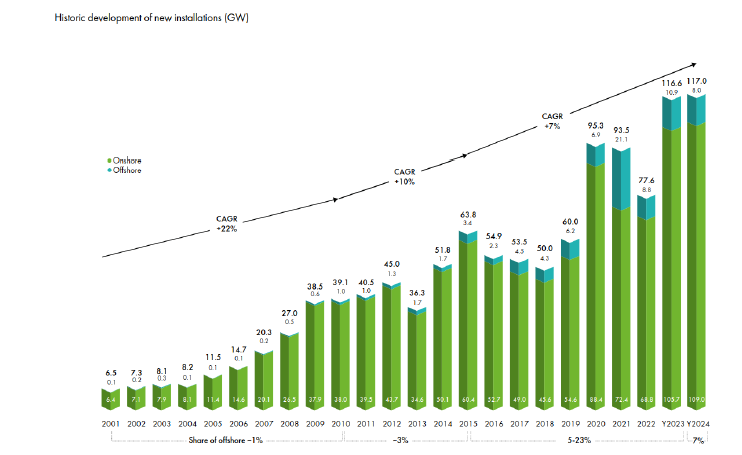 O setor de energia eólica atravessa um período de expansão sem precedentes. Relatórios do Global Wind Energy Council (GWEC) demonstram que a capacidade instalada global cresceu de forma acentuada nos últimos cinco anos, impulsionada pela transição energética.