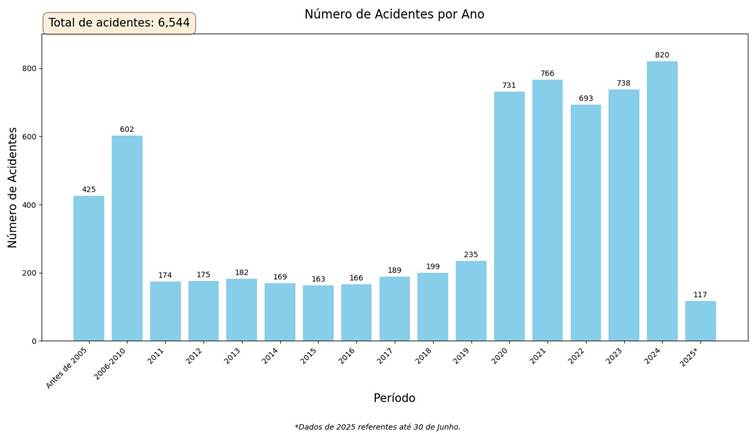 Contudo, essa aceleração na implantação de novos parques eólicos parece ter uma contrapartida preocupante. Dados compilados pela Scotland Against Spin (SAS) sugerem uma correlação direta entre o ritmo de crescimento da indústria e uma tendência de aumento no número de acidentes.