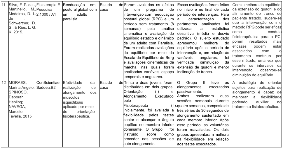 - DE MORAES, M. A; SPINOSO, D. H; NAVEGA, M. T. Efetividade da realização de alongamento dos músculos isquiotibiais aplicado por meio de orientação fisioterapêutica. ConScientiae Saúde, v. 14, n. 2, p. 298-305, 2015.