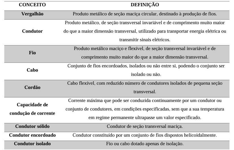 Para compreender o processo de fabricação e padronização dos condutores elétricos, é fundamental retomar algumas definições estabelecidas pelas normas da Associação Brasileira de Normas Técnicas (ABNT). A NBR 5471:1986 define os principais conceitos empregados no setor elétrico, essenciais para o entendimento da engenharia de produto dos cabos de cobre.