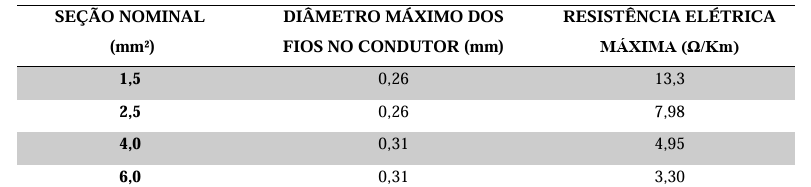 - Bitolas (Seções Nominais): foram selecionadas as bitolas de maior uso no mercado: 1,5 mm², 2,5 mm², 4,0 mm² e 6,0 mm².