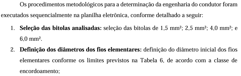 - Condutores analisados: o estudo focou nas classes 4 e 5 de condutores flexíveis (conforme ABNT NBR NM 280:2011), que representam a maior parte das aplicações em instalações elétricas residenciais e comerciais.