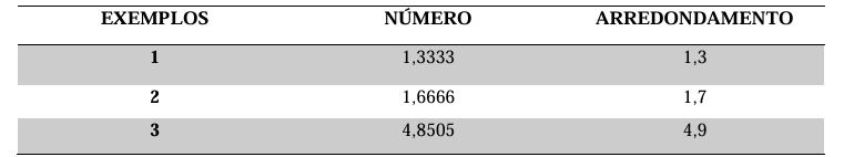 Tabela 8: Exemplos para regra do arredondamento