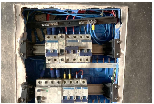 – Isolamento inadequado dos cabos nos barramentos de terra e neutro, com exposição de cobre, aumentando o risco de curto-circuito.