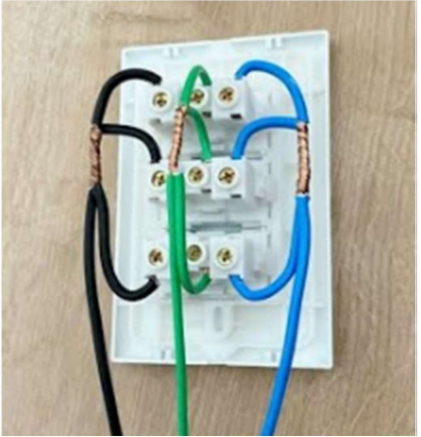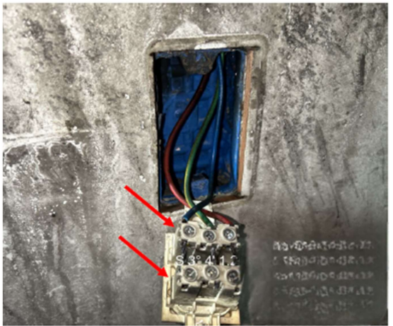 Imagem 09: Tomada da unidade habitacional, destaque para os bornes com instalações incorretas.