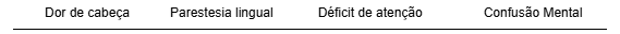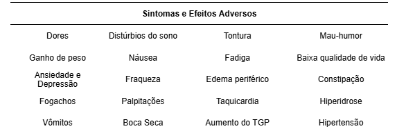 Tabela 4. Todos os sintomas e efeitos adversos registrados nas cinco revisões sistemáticas (Autoria: Própria, 2025)
