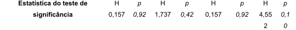 Foi realizado um teste de normalidade Shapiro-Wilk entre as variáveis de pico de ativação máxima (Reto Femoral (RF), Sóleo (SO), Tibial Anterior (TA) e Eretor da Espinha (EE)) os resultados apontaram para uma distribuição não paramétrica (p≤0,05). Desta forma, foi realizado o teste não paramétrico Kruskal-Wallis, onde não apontou diferença significativa na ativação dos músculos analisados (p≥0,10).