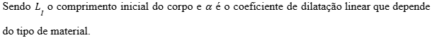 Segundo (ALVES FILHO, et. al., 1984) afirma que a dilatação pode variar de acordo com o material, ou seja, material diferente exposto à mesma temperatura terão dilatações diferentes. A variação de temperatura de um corpo é denominada de (∆T), e a variação de seu comprimento (∆L) conforme visto na equação (1).
