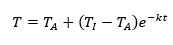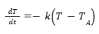 Sendo dT é a variação de temperatura sofrida pelo corpo; dt variação de tempo; k uma constante de proporcionalidade; T a temperatura inicial do objeto e TA temperatura ambiente.