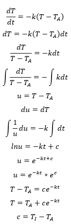 Desenvolvendo a equação (2), podemos encontrar a fórmula da temperatura em função do tempo, para isso aplicamos métodos de integração.