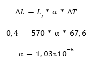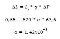 O aquecimento ou resfriamento de um corpo depende do material o qual foi fabricado e das condições climáticas do ambiente. Com o uso da equação (1), foi possível determinar para cada barra um coeficiente de dilatação linear.
