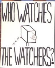 A pergunta presente nesta obra da Frente remete-nos a uma das placas utilizadas  na difundida série de ações do coletivo nova-iorquino Surveillance Camera Players  intitulada Você está sendo vigiado para sua própria segurança (“You are being watched for your own safety”). O grupo posiciona placas que contêm frases como  “Quem está vigiando?” (“Who is watching?”), “Chega de definição racial” (“No more  racial profiling”) e “Quem vigia os vigilantes?” (“Who watches the watchers?”) na  direção das câmeras de vigilância espalhadas pela cidade para questionar o abusivo  controle exercido pelos equipamentos de monitoramento. O que se tem demonstrado  pelo coletivo é o total desgosto pela prática vigilante e pela busca da polícia, que  gerencia e executa o monitoramento, por uma tipificação racial do elemento suspeito.