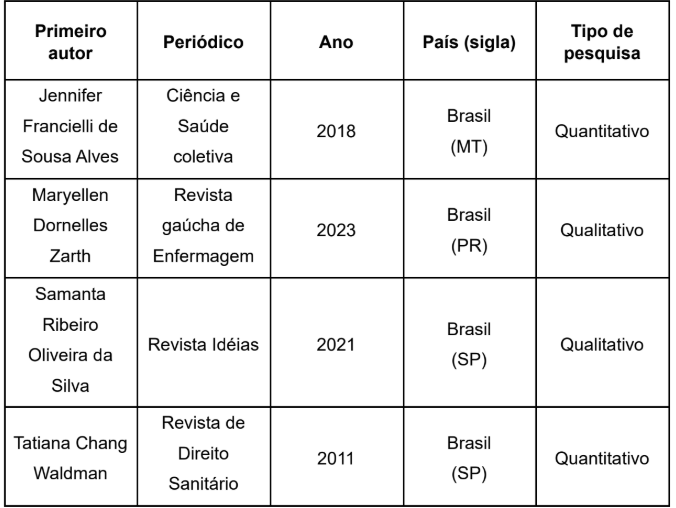 Os estudos encontrados tiveram amplitude temporal, de 2011 à 2023. Quanto à língua de origem, todos (04) artigos são da língua portuguesa (Alves et al 2018; Zarth et al 2023; Silva et al, 2021; Waldman et al, 2011). Referente ao país em que a pesquisa foi realizada, todos foram realizadas no Brasil, sendo dois na região Sudeste (Silva et al, 2021; Waldman et al, 2011), um na região Sul (Zarth et al., 2023) e um na região Centro-oeste (Alves et al., 2018).